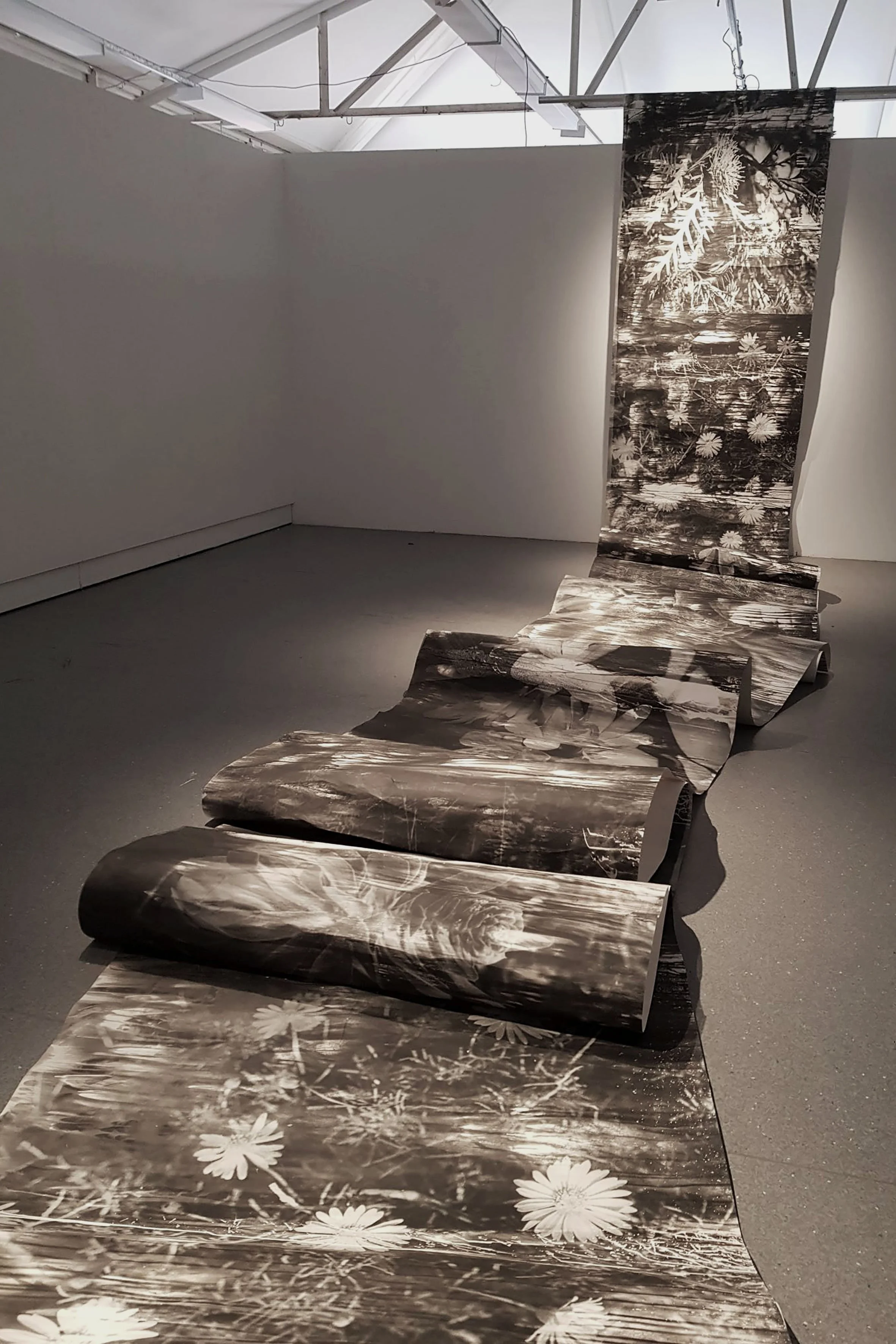 Zo Damage 2022, “Trust”, unique gelatin silver print (continuous roll), 110cm x 15M, installation size variable, installation view, Building 50, RMIT University, 2023. Photo courtesy Jessica Curry